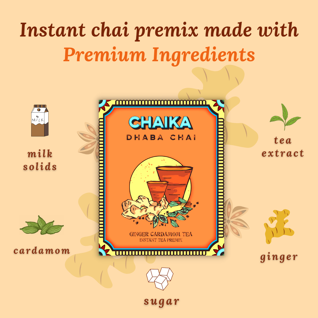 - Ingredients : Tea Extract, Milk Solids, Sugar, Ginger Cardamom Flavour