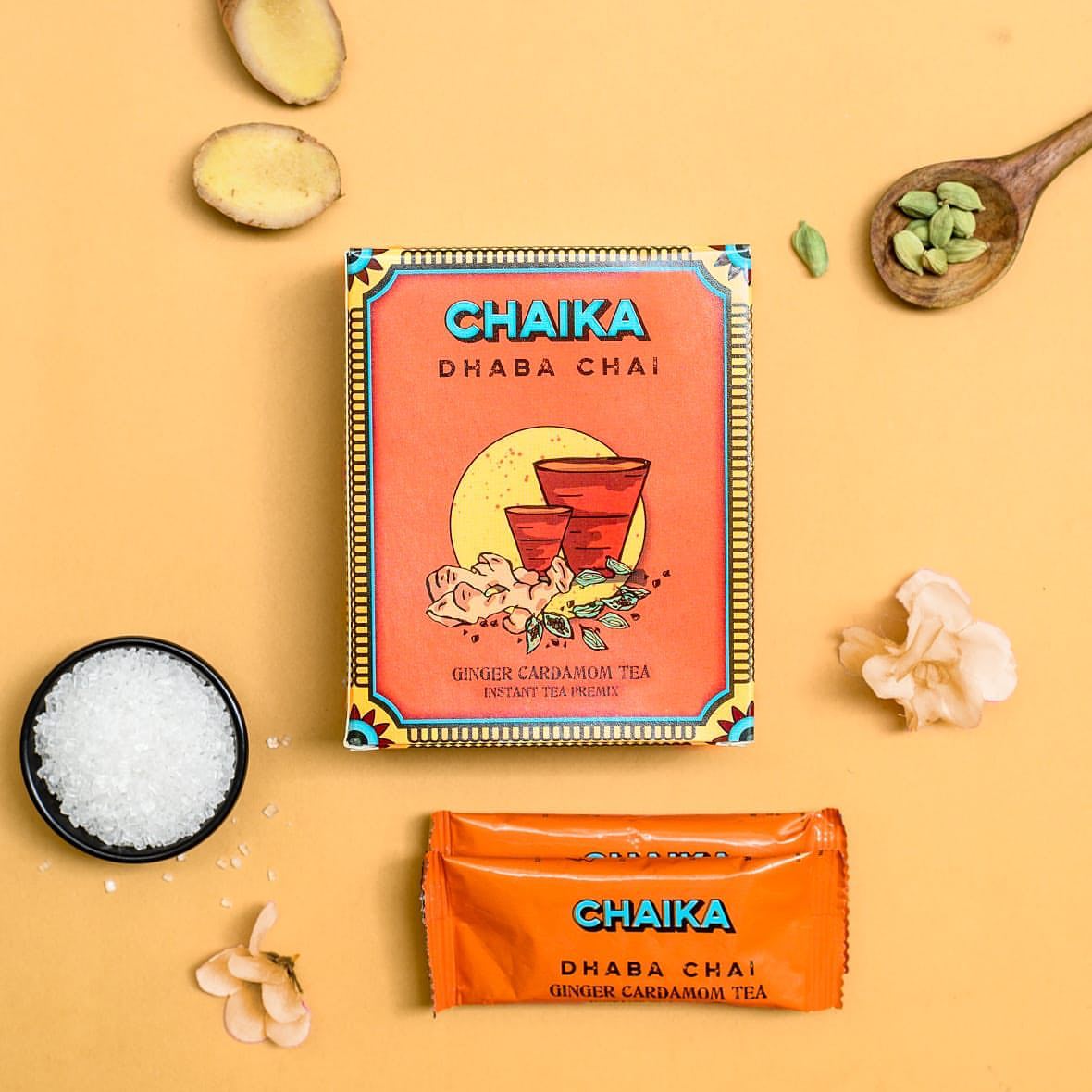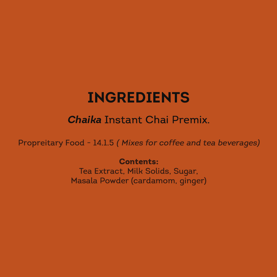 - Dhaba Chai: Black Tea Extract, Sugar, Milk Powder, Ginger & Cardamom