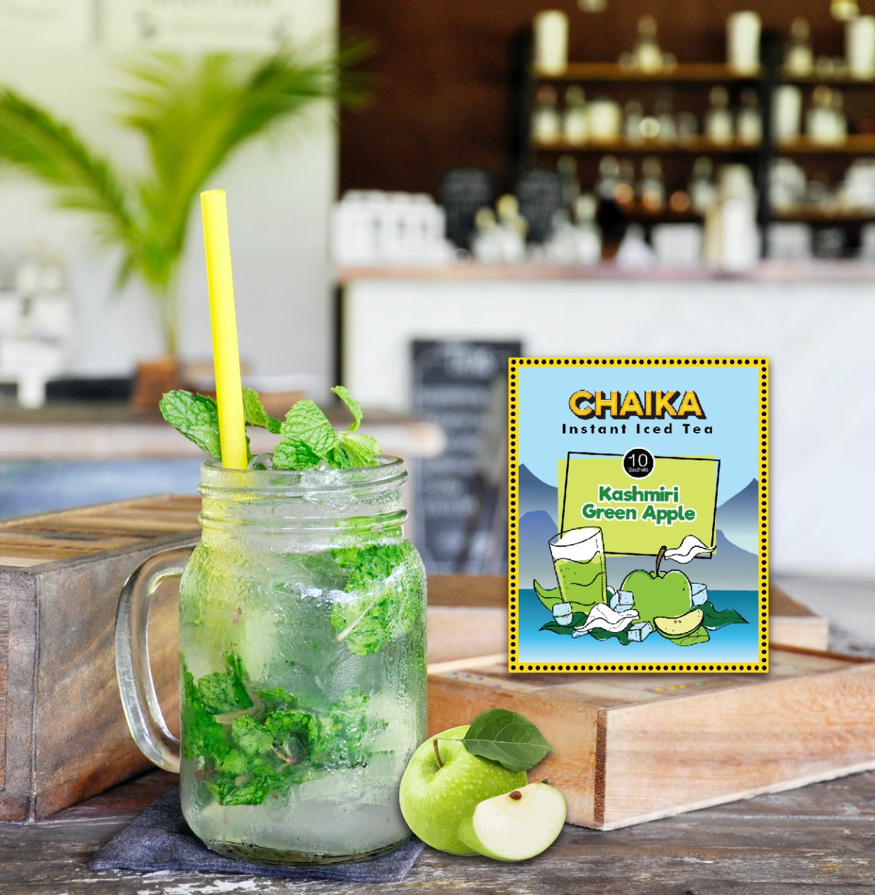 With a sachet of our Chaika Kashmiri Green Apple Iced Tea.