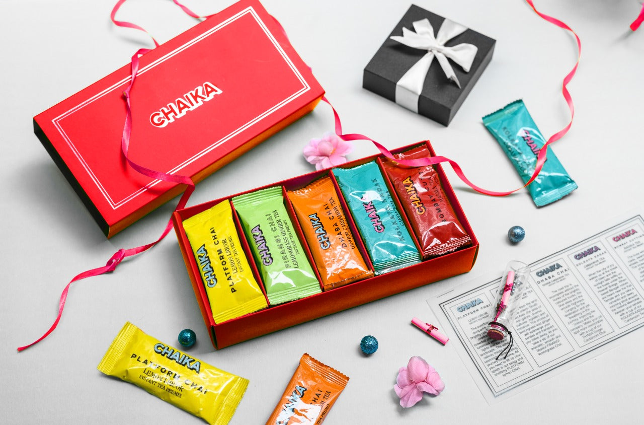 Canโt decide which flavour to buy? Want to gift a loved one a special Chaika care package? Introducing the Chaika gift box - which has sachets of each of the 5 flavours, elegantly packed in a green sliding box. Look no further for gifts for your near and dear ones!